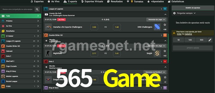A aposta 565 Game oferece aos jogadores a experiência mais conveniente de apostas em eSports!